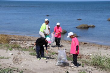 午後からは小豆畑の草取りと、砂浜のゴミ拾い。根深い大きな草を抜き、たまに小豆の苗を抜き、汗だくになりながらも美しい海に癒されます。疲労感も心地よくボランティア活動を終えました。